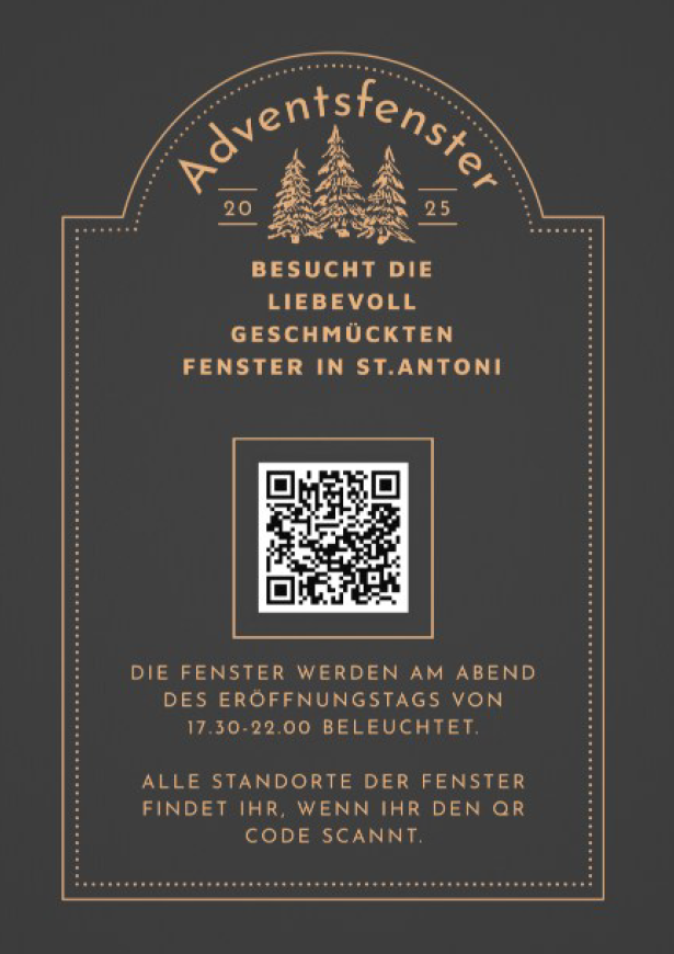 Adventsfenster in St. Antoni – auch beim Schulhaus gibt es was zum Bestaunen. Komm vorbei!